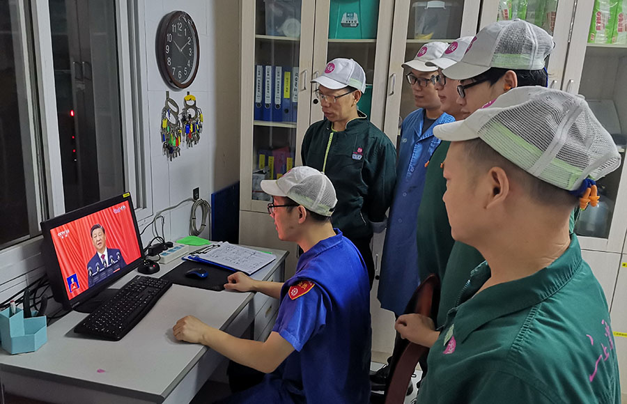 10月16日上午,市農(nóng)投集團(tuán)黨委周密部署、精心安排,組織集團(tuán)公司黨委領(lǐng)導(dǎo)班子成員、各級(jí)干部職工等共計(jì)5000余人通過(guò)多種方式認(rèn)真收看黨的二十大開(kāi)幕會(huì),聆聽(tīng)習(xí)近平總書(shū)記代表第十九屆中央委員會(huì)向大會(huì)所作工作報(bào)告。觀看完開(kāi)幕式后,廣大干部職工倍受鼓舞、反響強(qiáng)烈,紛紛表示,要持續(xù)深入學(xué)習(xí)貫徹黨的二十大精神,自覺(jué)把思想和行動(dòng)統(tǒng)一到落實(shí)黨的二十大提出的重大戰(zhàn)略部署和決策要求上來(lái),堅(jiān)定信心、銳意進(jìn)取、埋頭苦干,全力推動(dòng)集團(tuán)高質(zhì)量發(fā)展,為全面建成社會(huì)主義現(xiàn)代化強(qiáng)國(guó)、實(shí)現(xiàn)第二個(gè)百年奮斗目標(biāo)、推進(jìn)中華民族偉大復(fù)興貢獻(xiàn)自己的力量。