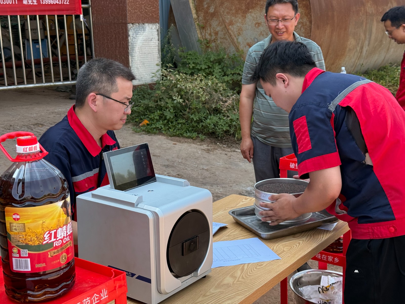公司建立了“優(yōu)質(zhì)優(yōu)價(jià)”收購(gòu)體系,以“慶油3號(hào)”為例,對(duì)于符合收購(gòu)條件的菜籽,價(jià)格較普通菜籽上浮10%,且菜籽含油率每增加1%價(jià)格順加,實(shí)現(xiàn)綜合收購(gòu)價(jià)較市場(chǎng)價(jià)高出200元/噸。在收購(gòu)現(xiàn)場(chǎng),公司員工通過(guò)近紅外光譜儀現(xiàn)場(chǎng)快速檢測(cè)水分、含油率等指標(biāo),實(shí)現(xiàn)“田間直收+廠區(qū)掛牌”雙軌收購(gòu),5月20日至8月15日期間分階段收購(gòu),確保應(yīng)收盡收。